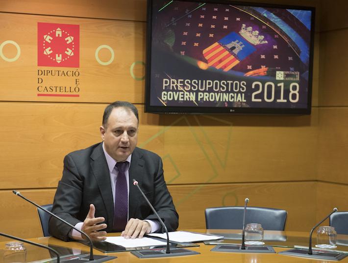 "La eficiencia en la gestión marcada por Javier Moliner al frente del Gobierno Provincial hará posible que en el presupuesto de la Diputación de Castellón en 2018 se contemple una mejora sustancial de los servicios que presta la Corporación Provincial al servicio de la mejora de oportunidades en la provincia, con seis millones de euros más de inversión que en 2017"