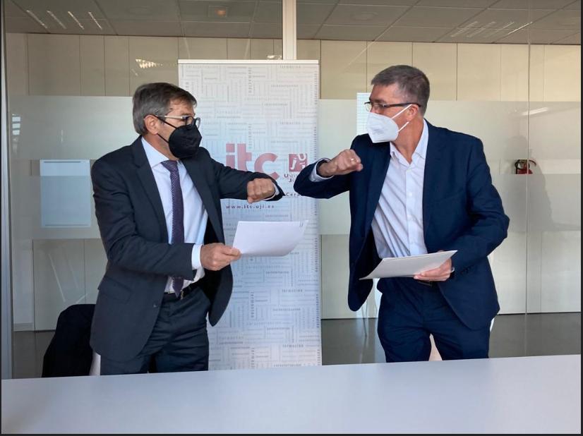 Tras la firma de la concesión, Rafa Climent y Júlia Company se han reunido con el nuevo presidente del Centro Europeo de Empresas Innovadoras (CEEI) de Castellón, Alfredo Raúl Cebrián.