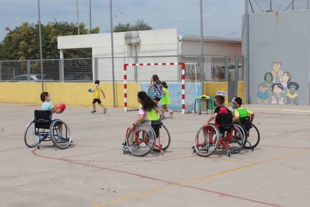 Així, durant tot el matí, s'ha dividit el pati en nou estacions amb nou esports adaptats, per les quals els diferents cursos i grups escolars han anat alternant-se: bàsquet en cadira de rodes, eslálom, boccia, voley assegut, atletisme per a invidents, paratriatló, A-ball, Goalball i tir amb arc.