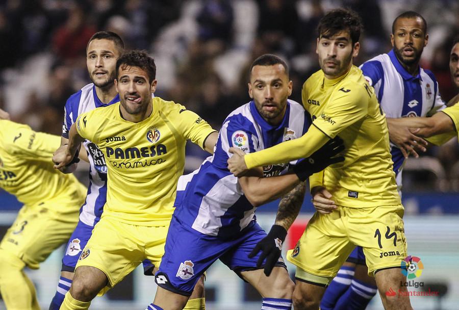 La primera parte fue de pocas ocasiones. Con un Deportivo que salió con enorme intensidad, el Submarino se empleó en no dejar huecos en defensa que el conjunto gallego pudiera aprovechar. Bien plantados atrás, los amarillos buscaban robar para salir con peligro, pero el marcaje de los gallegos impedía que los visitantes saliesen con la pelota jugada.