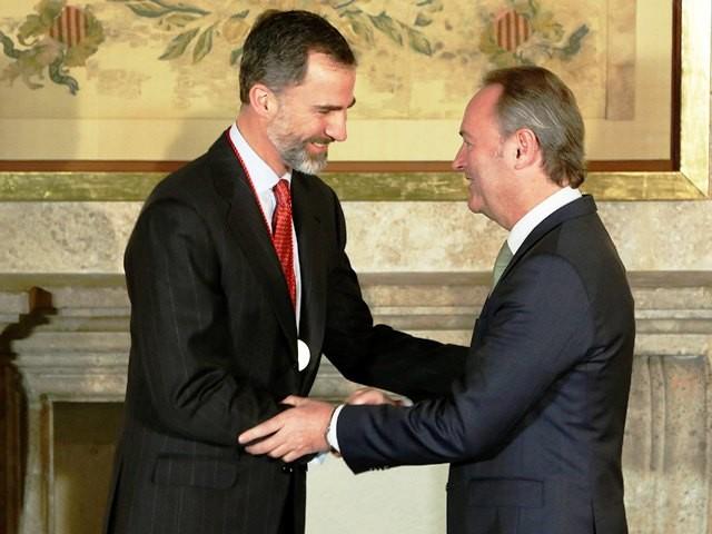 El Presidente de la Generalitat, Alberto Fabra, ha hecho entrega hoy de la Alta Distinción del Gobierno valenciano y de la Gran Cruz de la Orden de Jaume I El Conqueridor a S.M. El Rey Felipe VI