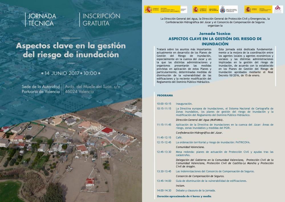 En la jornada s'abordaran qüestions relacionades l'aplicació de la Directiva Europea d'Inundacions, el Sistema Nacional de Cartografia de zones inundables, la Directiva d'inundacions a la conca del Xúquer, l'ordenació territorial a través del PATRICOVA, els plans d'actuació de Protecció Civil o les indemnitzacions del Consorci d'Assegurances.