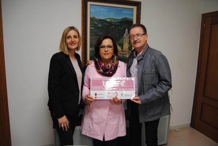 L'Ajuntament d'Alcalà-Alcossebre ha lliurat avui a l'Associació Local contra el càncer de la recaptació obtinguda en la cursa solidària del Dia de la Dona. En total, 1.050 euros, aportats pels participants a la cursa, que es destinaran a la investigació contra aquesta malaltia, tal com es fa amb tots els fons que es recapten a través de l'entitat a nivell nacional. La presidenta del col·lectiu local, Conxin Martí, ha rebut el xec de mans de l'alcalde Francisco Juan i de la regidora Maria Agut.