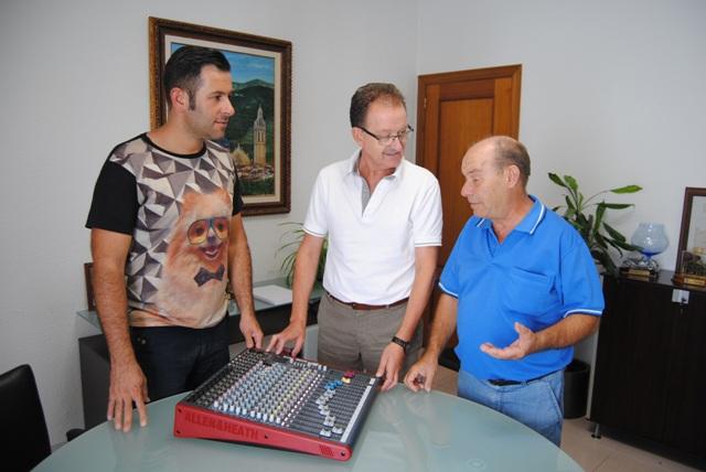 El alcalde Francisco Juan y el concejal de Fiestas, Pascual Herrera, han hecho donación hoy, en nombre del Ayuntamiento de Alcalà, a Antonio Bosch, director de la Asociación Local de Teatro ‘TeatreAlcalà’ de un nuevo equipo de sonido, que mejorará técnicamente las representaciones que realiza esta entidad, muy implicada en la vida cultural y festiva de la localidad.
