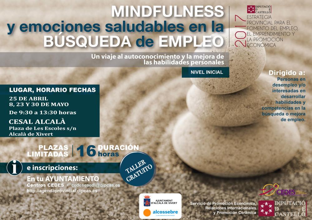 mindfulnessL'edifici CESAL d'Alcalá acollirà el taller 'Mindfulness i emocions saludables en la recerca de treball. Un viatge a l'autoconeixement i la millora de les habilitats personals', adreçada a persones en situació d'atur, amb l'objectiu de millorar les seves eines a l'hora de trobar noves oportunitats de treball, aprofitar les seves competències i canalitzar el seu potencial. El taller és gratuït i es desenvoluparà els dies 25 d'abril, 8, 23 i 30 de maig, en horari de 9.30 a 13.30 hores. Els interessats a participar poden inscriure dirigint-se a l'ADL i el SEAFI a Alcalà i oficines municipals d'Alcossebre. Les places són limitades.