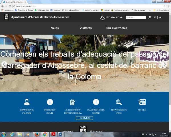 El web de l'Ajuntament d'Alcalà-Alcossebre www.alcaladexivert.es presenta una imatge renovada en el que és ja la sevaversió definitiva. El nou web, que es va posar en marxal'anypassat, ésmolt similar a la versió inicial tot i que, en aquestaocasió, s'hacanviat el colorit del menú principal i s'hamilloratoptant per una seccionsmésfàcils de consultar i majorespaidestinat a imatges i grafismesméssenzills. El web manté el Menú Principal des del quals'accedeix les seccionsVeïns-Visitants-SeuElectrònica. A través del menú principal, apareixenaccessosdirectescominformació sobre el parc industrial el Campaner, mapa de MunicipiCardioprotegit, Notícies, Agenda, Farmàcies de Guàrdia, Horaris de Bus i Tren, etc. Tota la informació del web apareix en doble versiócastellà i valencià, podent-se triar la versió des del menú inicial. El web potvisualitzar i consultar perfectament a través delsdispositiusmòbils ja que comptaamb un formatespecíficespecialmentconfigurat per a això.