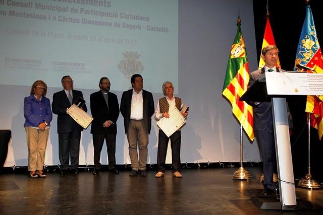 El alcalde de Castellón, Alfonso Bataller, ha presidido esta tarde el acto de entrega de los ‘Premios Participación Ciudadana’ a ‘Cáritas Diocesana Segorbe-Castellón’ y al actor Guillermo Montesinos.