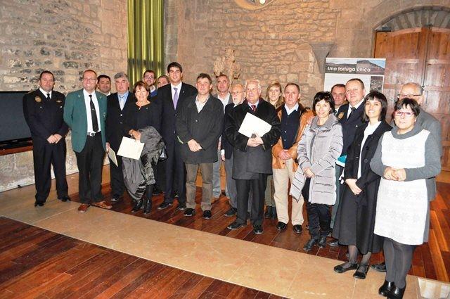 El alcalde de Morella entrega las Cruces de Santa Llúcia a la Cofradía de les Vestes, Josep Alanyà y la Cruz Roja