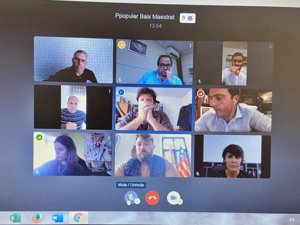 Los alcaldes y portavoces del PP en los ayuntamientos del Maestrat han mantenido esta mañana una reunión de trabajo, vía telemática, para reafirmarse en el “apoyo y lealtad a las diferentes administraciones para superar unidos la pandemia provocada por el coronavirus que ha provocado ya miles de fallecidos en toda España y que tendrá graves consecuencias económicas”.