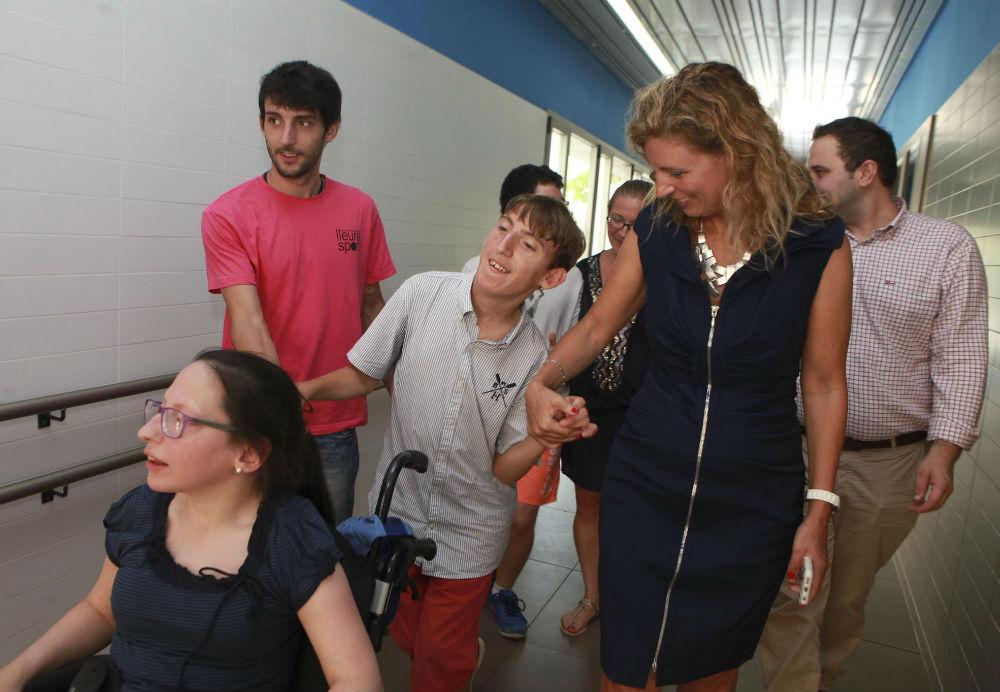 Los 24 alumnos y alumnas de educación especial de la escuela de verano del Castell Vell han recibido esta mañana a la alcaldesa de Castellón, Amparo Marco, y al concejal de Bienestar Social, José Luis López.