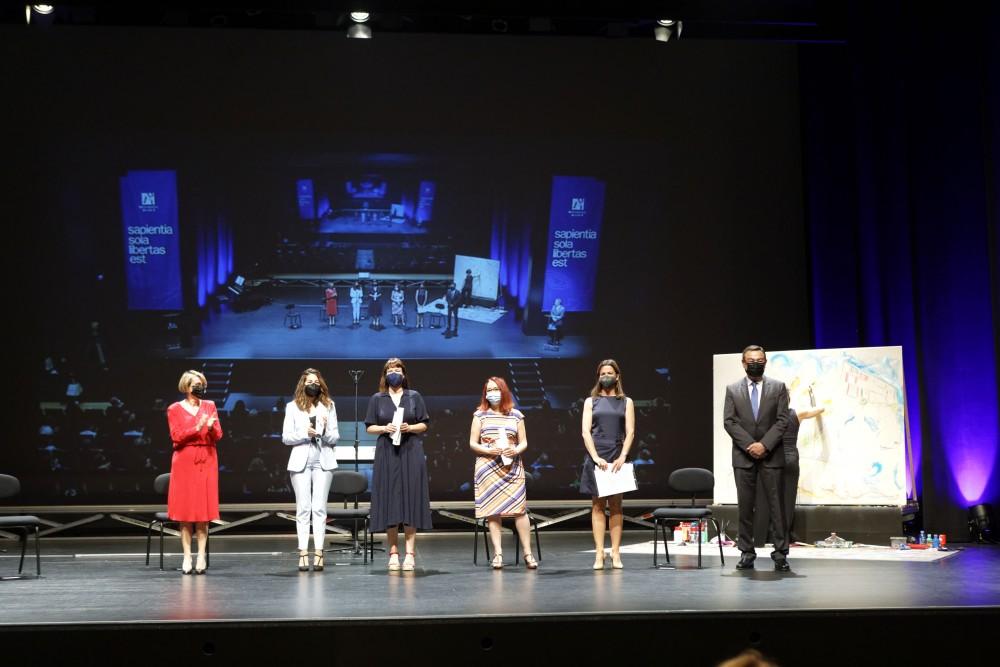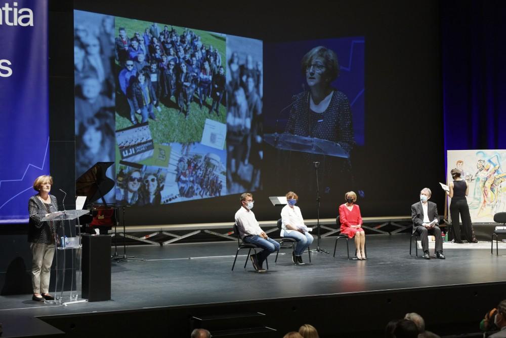 Alcón ha agraït la implicació de les professores Paula Escobedo, Anna Arnal, Soledad Quero i Marta Oller, que han rebut el XII Premi a l'Excel·lència Docent Universitària, i les ha animat a continuar per «aqueix camí d'excel·lència i acompanyar els milers de joves que confien en l'UJI com a millor garantia de futur». Un futur –ha afegit– que passa també per la investigació de qualitat com la que representa la catedràtica María Luisa Cuerda, XXII Premi d'Investigació. «De ben segur que aquest reconeixement del Consell Social de l'UJI t'animarà a seguir treballant amb el rigor que et caracteritza i enfortirà el teu compromís institucional», ha dit.