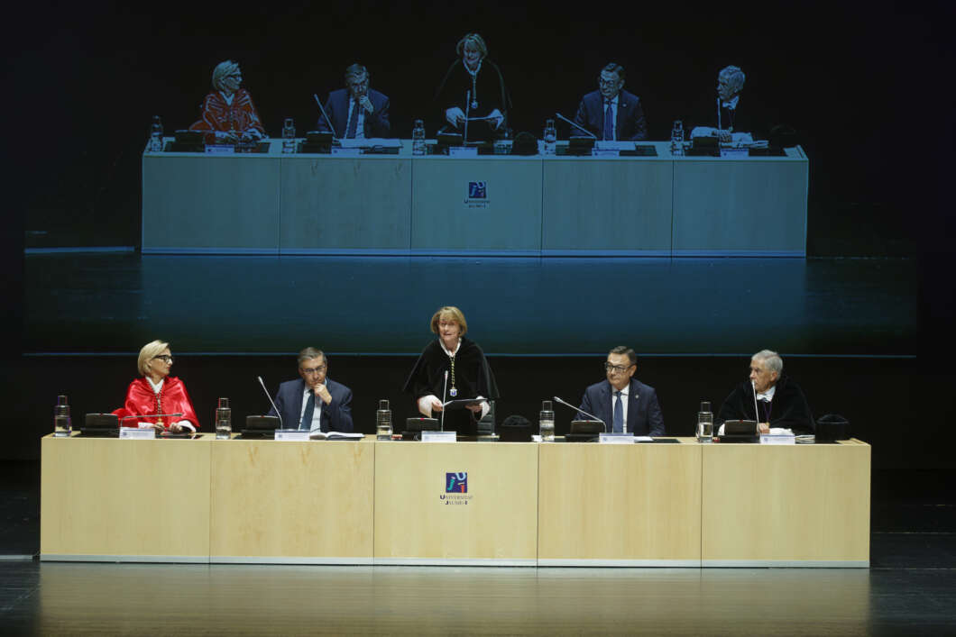 En su intervención, la rectora también ha presentado la hoja de ruta para este curso académica. Entre las acciones que la UJI llevará a cabo se encuentran actualizar la oferta académica y potenciar la formación permanente para dar respuesta a las demandas sociales; fortalecer los institutos de investigación para incrementar su impacto social; impulsar la captación y retención de talento; fomentar la transferencia y el acercamiento al tejido social a través de la creación de la Oficina de Transferencia de Conocimiento y la redefinición del programa de creación de empresas; avanzar en la internacionalización apostando por Europa, fortaleciendo los vínculos con América Latina y desplegando nuevos modelos de movilidad virtual, o favorecer la inserción laboral, mediante un nuevo plan de empleabilidad y emprendimiento.