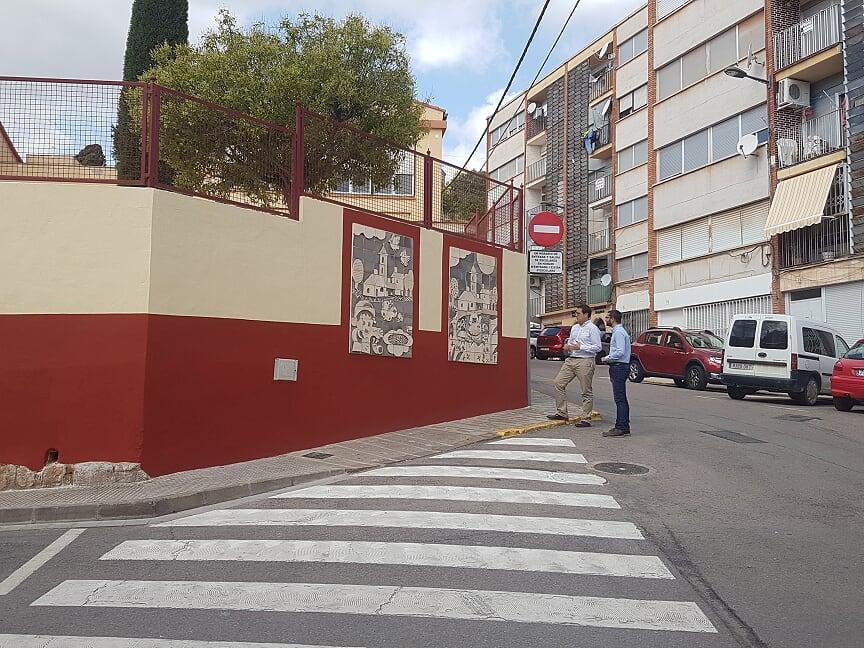 Algunas de las fachadas y muros del centro se encontraban deteriorados, presentaban desconchados debidos a la humedad, eflorescencias o golpes. Así, se ha lijado, acondicionado y pintado la fachada principal que recae en el patio, la fachada lateral que da al porche de acceso, las fachadas del edificio anexo, la jardinera completa de la entrada y la parte exterior del muro perimetral que delimita la parcela con la calle Joaquín Nos Mora y con la calle Enrique Grangel Girona y la fachada del centro.