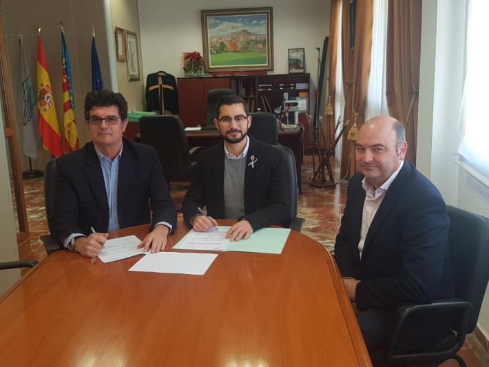 L'alcalde del municipi, Samuel Falomir i el president de FACSA, Enrique Gimeno han signat el conveni de col·laboració