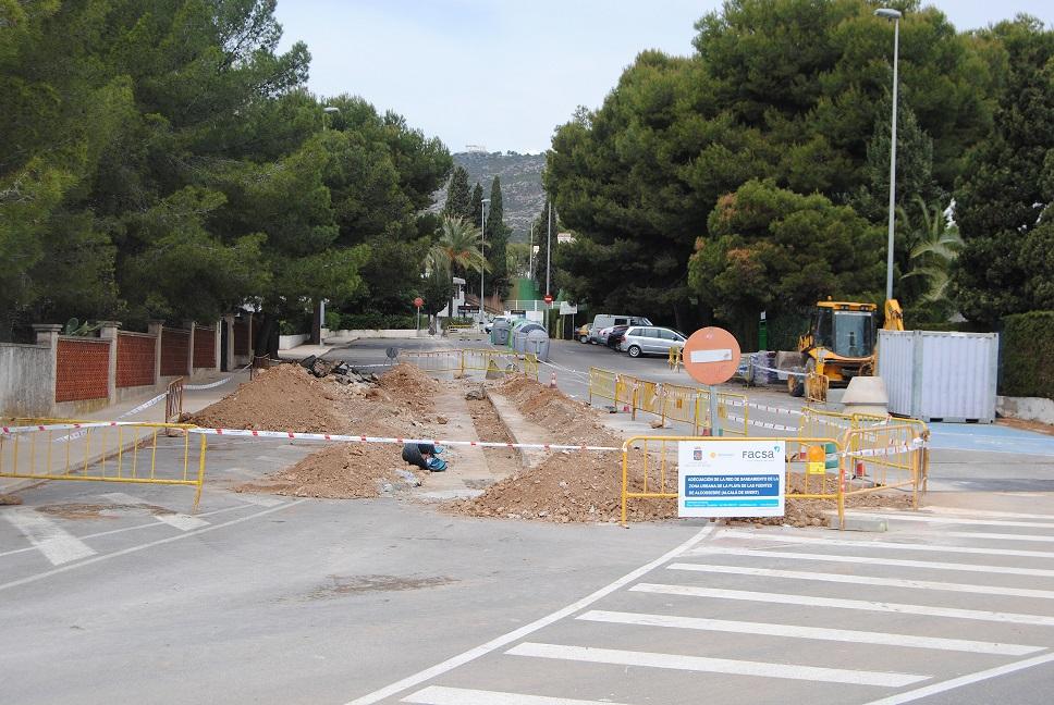 De fet, dins de les obres en Les Fonts, les del carrer Jai Alai ja estan finalitzades a falta de completar-se amb actuacions menors a la rotonda de la plaça Les Fonts, passeig Tomillo i camí l'Atall, en zona Ribamar, avinguda Manila i avinguda Les Fonts. Han consistit en la millora xarxa, substitució de diversos trams i instal•lació de noves canonades i conduccions, buscant evitar possibles fuites per l'antiguitat de les instal•lacions i generant un sistema recol•lector que faciliti que es puguen realitzar inspeccions immediates. A més, es modernitzarà la xarxa evitant estrenyiments, que generen embussos i desbordaments de forma puntual. L'obra està complint amb els terminis previstos i es va programar perquè el seu inici no coincidís amb la Setmana Santa i l'inici de la temporada d'estiu. L'actuació compta amb un pressupost de 50.566 euros, que es financen a través de l'ajuda compromesa per la Diputació Provincial, per a col•laborar en assegurar la qualitat mediambiental de la platja de les Fonts.