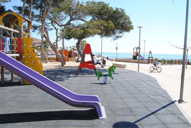 S'ha incorporat un nou gronxador i s'ha renovat la superfície de cautxú que recobreix el paviment, per evitar danys en cas de caigudes. També s'ha renovat el seient i les cadenes del gronxador ja existent, a la zona més propera al mar, i s'han canviat les cordes d'un dels jocs infantils d'escalada situats a la pineda. En les properes setmanes, està previst que es pinten els elements de jocs i mobiliari urbà.