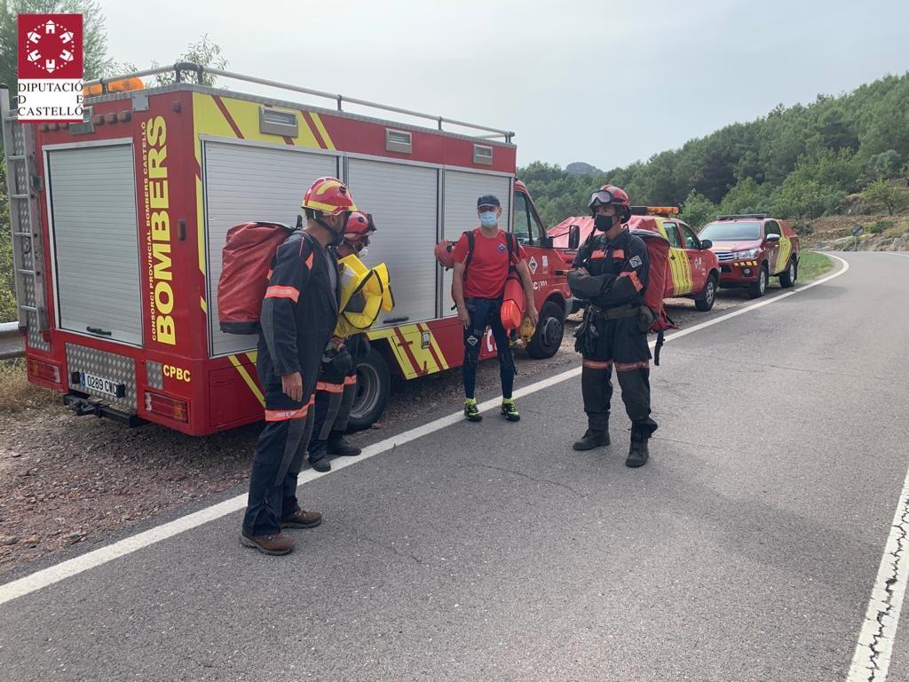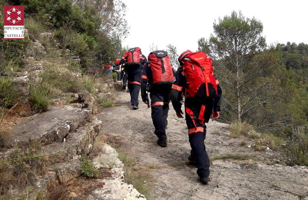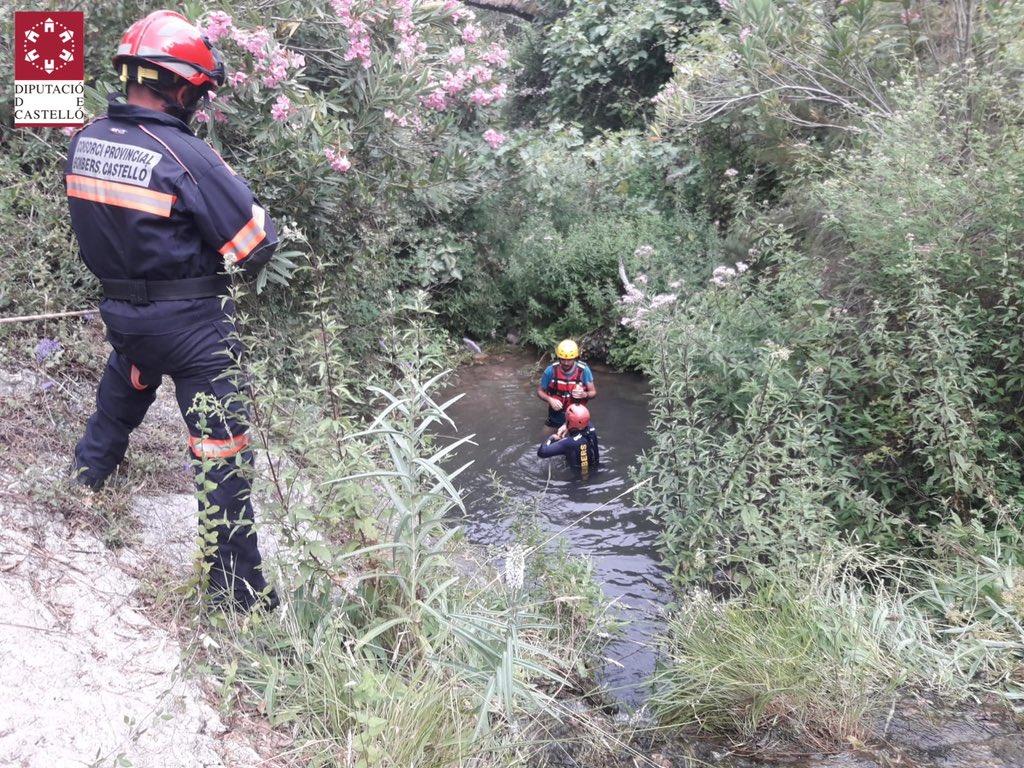Efectivos del Consorcio Provincial de Bomberos de Castellón de los parques de Plana Baixa y Espadà Millars han rescatado a un varón que estaba en una poza del exterior de la cueva del Toro en Alcudia de Veo y no podía salir.