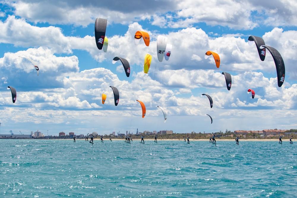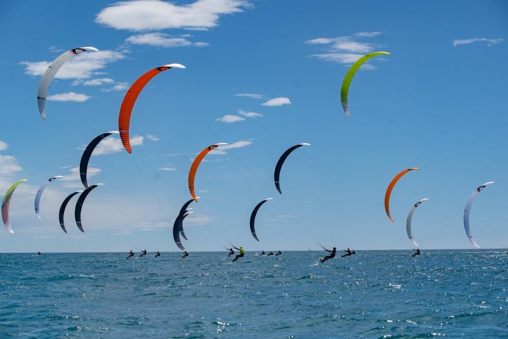 Pero el domingo fue un día para disfrutar. Viento de sus- sureste, de entre 12 y 16 nudos de viento, hicieron volar a los kitesurfistas sobre el mar, y permitieron la celebración de 6 pruebas más.