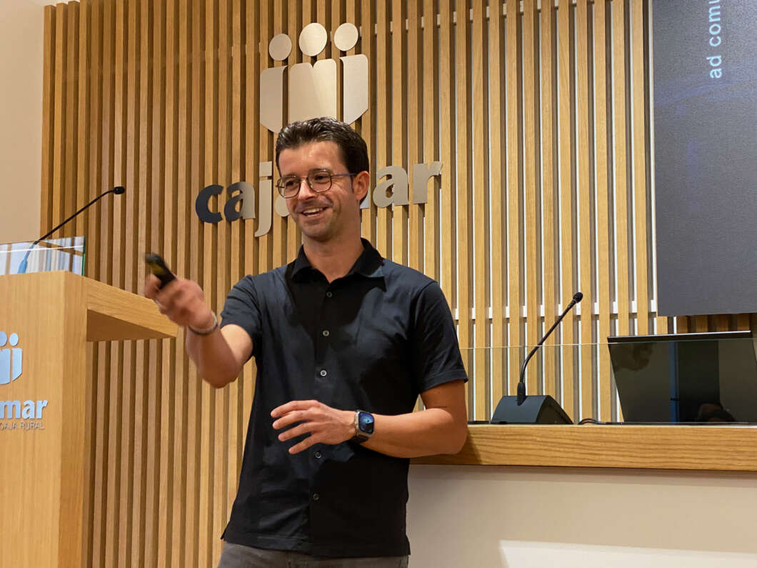Esta tarde ha impartido un taller para comunicadores en el salón de Actos de Cajamar, organizado por la Asociación para el Desarrollo de la Comunicación, de la que forma parte, como socio y compañero.