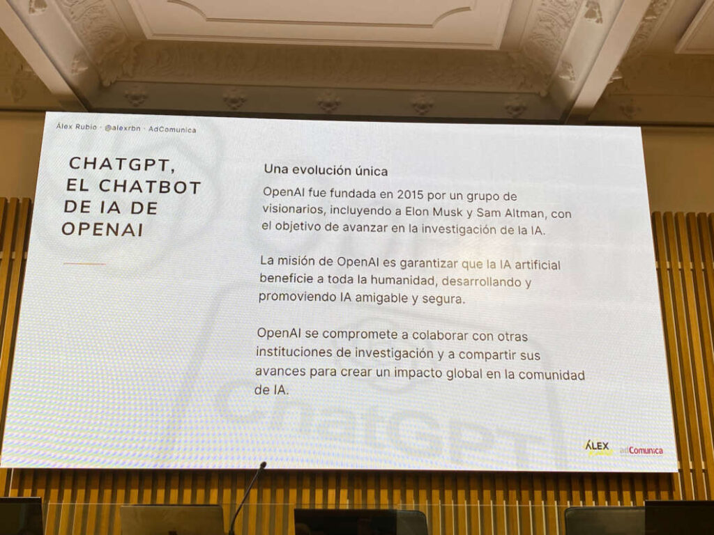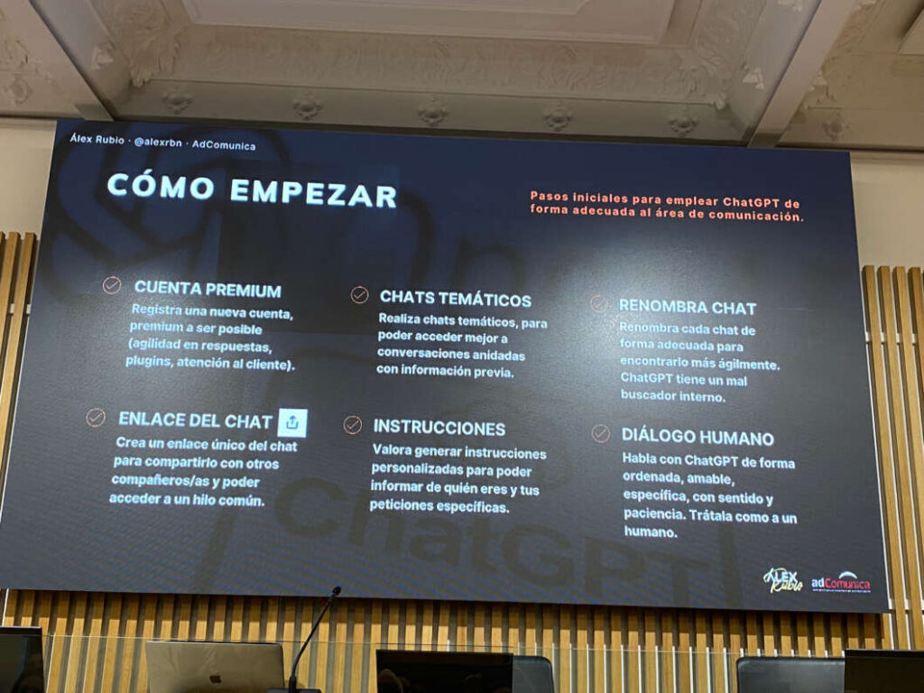 Alex Rubio, director y Chief Strategy Officer de la agencia de marketing digital y tecnología Twelfhundred y profesor universitario ha impartido esta tarde un taller sobre ChatGPI a los socios de AdComunica. Y como bien ha citado al término de su exposición: “La Inteligencia Artificial no va a sustituir a nadie, lo hará alguien que sepa utilizarla”