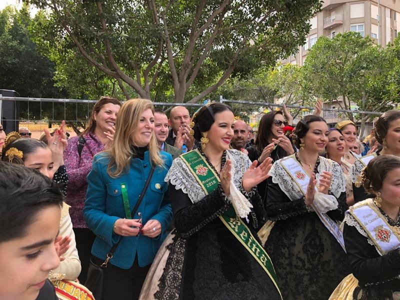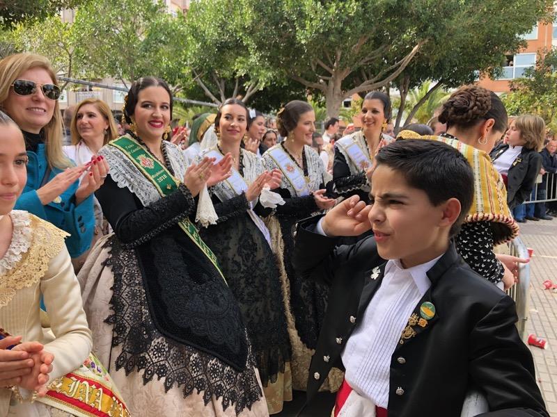 En homenaje a la capital de la Plana y a su reina infantil, Lucía Burguete, las belleas del Foc infantiles de Alicante y las falleras infantiles de Burriana, entre la comitiva que siguió el disparo al pie del recinto en el primer Molí.