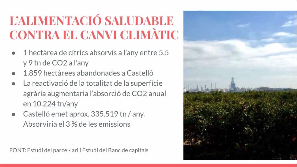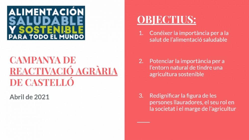 La regidoria de Transició Ecològica de l'Ajuntament de Castelló impulsa la campanya Alimentació i Salut de la Xarxa de Ciutats per l'Agroecologia per a avançar cap a un sistema agroalimentari sostenible i saludable, conscienciar sobre la importància en la salut de l'alimentació, dignificar el treball de l'agricultura, i destacar el paper del consum de proximitat com a generador d'ocupació local i protecció del territori, segons ha destacat el regidor de Transició Ecològica en la presentació. Aquesta iniciativa suposa la primera cita d'una campanya que Transició Ecològica llançarà durant tot el mes per a posar en valor polítiques de suport al sector agroalimentari de Castelló.