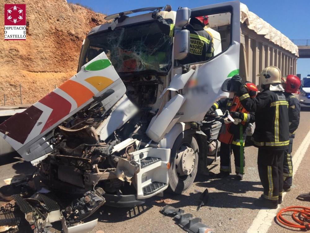 Efectivos del parque Plana Baixa del Consorcio Provincial de Bomberos de Castellón, acaban de intervenir en un accidente de tráfico que se ha producido en la CV10 a su paso por Almassora y en el que se han visto implicados dos camiones.