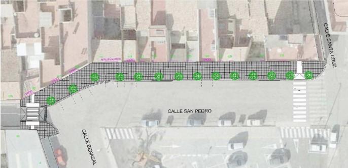 El proyecto simplificado, redactado por el departamento de Urbanismo del Ayuntamiento de Almassora, contempla la ampliación de la acera existente en el frente de fachada de la calle San Pedro, correspondiente con los números 103 a 133, en el lado oeste, y número 80 en el lado este. El plan de obra contempla la actuación de un vado peatonal, en las proximidades a la calle Santa Cruz, y un paso de peatones elevado, en el cruce con calle Benassal.