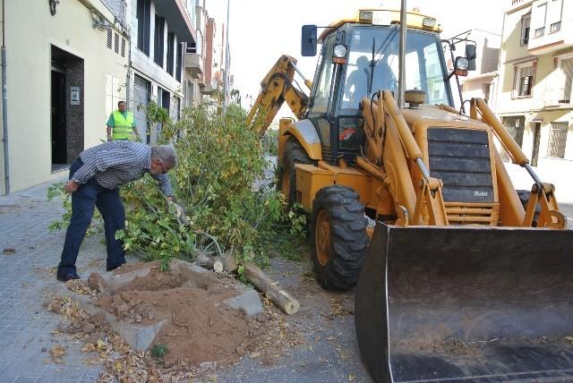 El departamento de Servicios Públicos del Ayuntamiento de Almassora retiró ayer 15 ejemplares de arces enfermos de la calle Santa Quitèria. La manzana objeto de actuación, situada entre la calle Virgen de Gracia y Santo Cristo, forma parte de una intervención más ambiciosa que pretende retirar las especies afectadas por una patología que, “pese a los tratamientos, afecta a todos los ejemplares de acer negundo de esta calle que acaban muriendo”.
