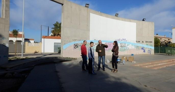 El sábado ha comenzado a cambiar la imagen de esta zona de El Xopar y hoy domingo continuarán los trabajos que está previsto culminen en las próximas semanas. Tormo, que ha saludado a ambos jóvenes acompañada por el primer teniente de alcalde, Luis Martínez, ha declarado que “la intención es mejorar la imagen no solo del lienzo principal, el de mayores dimensiones, sino también del anexo situado junto al mismo”, ha declarado la regidora