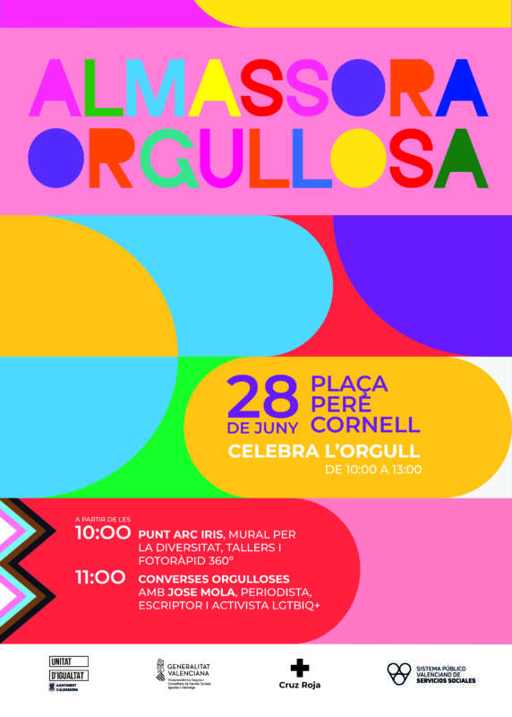 El Ayuntamiento de Almassora, a través de la Unidad de Igualdad, ha organizado una amplia programación de actividades para dar visibilidad al Día del Orgullo LGBTBIQ+, que se celebrará este próximo viernes, 28 de junio. Bajo el lema Almassora Orgullosa, desde las 10.00 a las 13.00 horas, la plaza Pere Cornell se convertirá en un gran espacio de entretenimiento y reivindicación abierto a toda la ciudadanía.