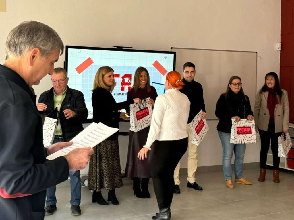 La alcaldesa de Almassora, María Tormo, acompañada de miembros de la corporación municipal ha felicitado a los vecinos que han obtenido el certificado profesional y les ha deseado mucha suerte en esta nueva etapa laboral, que empiezan con el fin del taller.