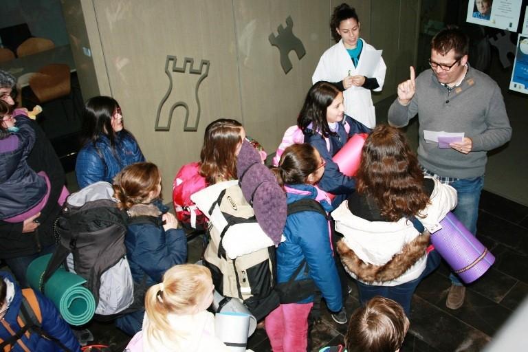 Los pequeños llegaron a las 21 horas a la planta baja de la Casa de la Cultura, donde les esperaban los monitores para darles la bienvenida y ayudarles a instalarse entre libros. Cargados con sacos de dormir, pijamas y cepillos de dientes, los más pequeños pronto se distribuyeron en el espacio habilitado para celebrar esta primera “Nit a la biblioteca” que arrancó con una cena de bocadillo.