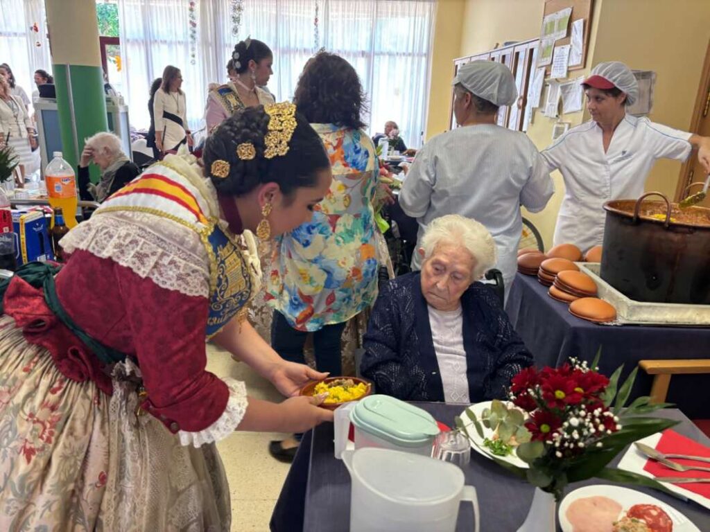 Després d'este lliurament, s'ha iniciat el repartiment de prop de 8.000 racions cuinades en 52 calderes, encara que només 22 d'elles es preparen al carrer. És el plat més popular d'Almassora, un arròs sec que es cuina de manera magistral. Cada una de les calderes està composta per 14 quilos d'arròs i 14 de pollastre, 2,5 quilos de costella, litre i mig d'oli, 2,5 quilos de pésols, tres pots de tomaca, alls i sal.