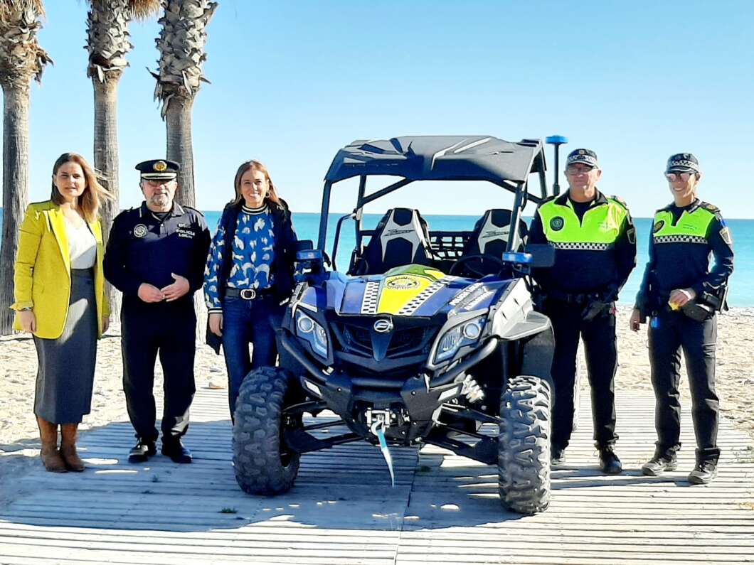 La alcaldesa de Almassora, María Tormo, y la concejala de Seguridad Ciudadana, Silvana Rovira, han presentado en el parque del Pitillo de la playa este buggy. “Está preparado para la circulación por cualquier tipo de superficie, incluidas aquellas afectadas por inundaciones o de difícil acceso, como las zonas del cauce del río Millars, la desembocadura y el litoral”, ha indicado Tormo.
