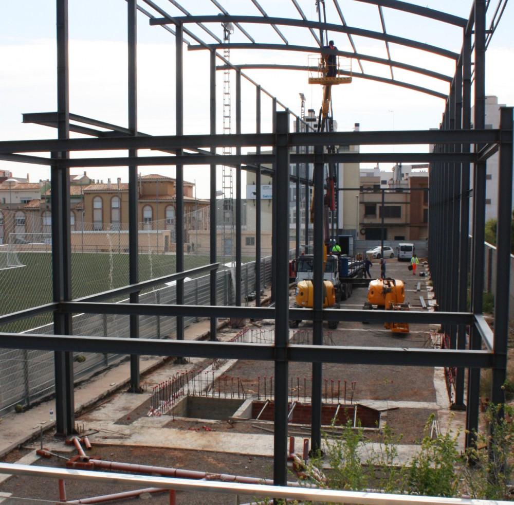Aquest punt del projecte és clau per a conformar l'aspecte del futur trinquet i, a causa de les dimensions de l'estructura, els treballs van començar amb la preparació de les peces en un taller extern. El passat 11 de març els operaris van iniciar la instal·lació de pilars i bigues i l'assemblatge de les parts de l'esquelet de l'edifici, per la qual cosa els treballs avancen a bon ritme, segons informen els tècnics municipals.