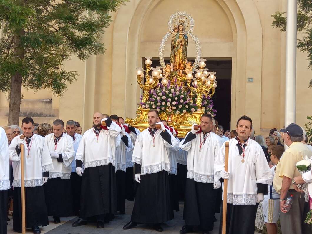 En el seu recorregut des de tots dos temples, la verge ha estat acompanyada de nombrosos veïns, representants d'entitats festives, culturals i religioses de la localitat, així com els membres de la corporació municipal i la cort d'honor conformada per Dean Curic, Adrián Campos, Carla Escuder i Joana Adsuara. Tancant la comitiva estava la reina de les festes, Elena Portalés, al costat de l'alcaldessa, María Tormo; i el diputat autonòmic Luis Martínez.