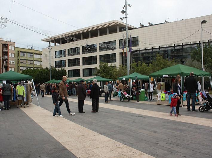 La Feria Outlet de Almassora ha abierto sus puertas esta mañana en la plaza Pere Cornell para dar la bienvenida a la campaña de rebajas. Finalmente, 11 establecimientos de la localidad se han sumado a esta iniciativa que pretende reducir el ‘stock’ de productos almacenados por los comercios durante la temporada.