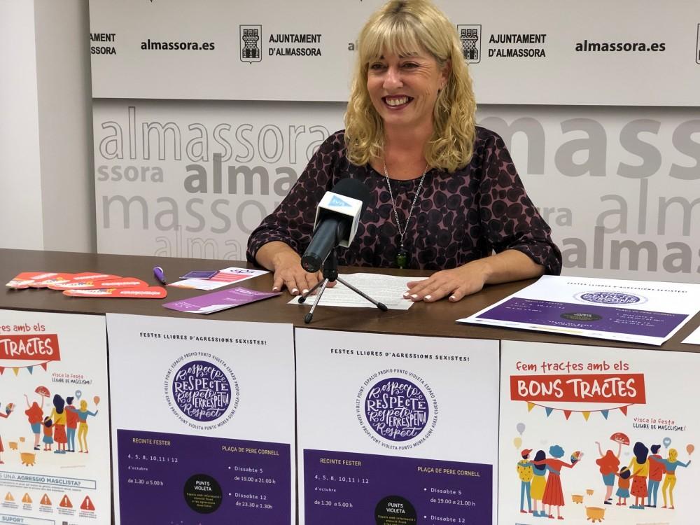 La regidora d'Igualtat d'Almassora, María José Tormo, ha presentat la campanya de sensibilització i prevenció de les agressions masclistes per a les festes del Roser que comencen demà. Sota el títol ‘Fem tractes amb els bons tractes. Ventem el masclisme’, la localitat activarà demà els punts violeta, un ventall amb consells i telèfons d'emergència, un codi QR d'accés a una llista de cançons per la igualtat i la cartelleria informativa per a la conscienciació ciutadana.