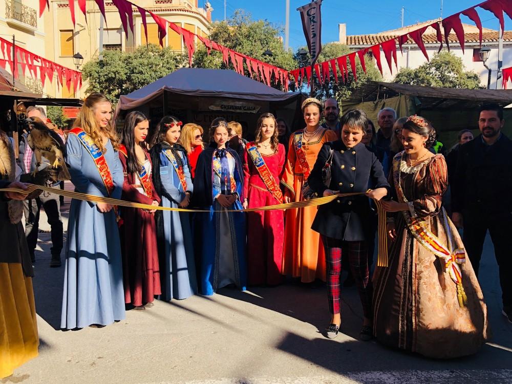 La reina de les festes, María Portalés, i la seua cort d'honor han tallat aquest matí la cinta inaugural del recinte en la plaça de la Picaora al costat de l'alcaldessa, Merche Galí, i la resta d'autoritats que s'han acostat a celebrar la majoria d'edat d'aquesta mostra. Abillades segons els cànons medievals, les representants de les festes han recorregut el centenar de llocs repartits entre la plaça i els carrers Colom, Sant Vicent i Sant Joaquim, a més del recinte gastronòmic situat al costat de l'església de la Nativitat.