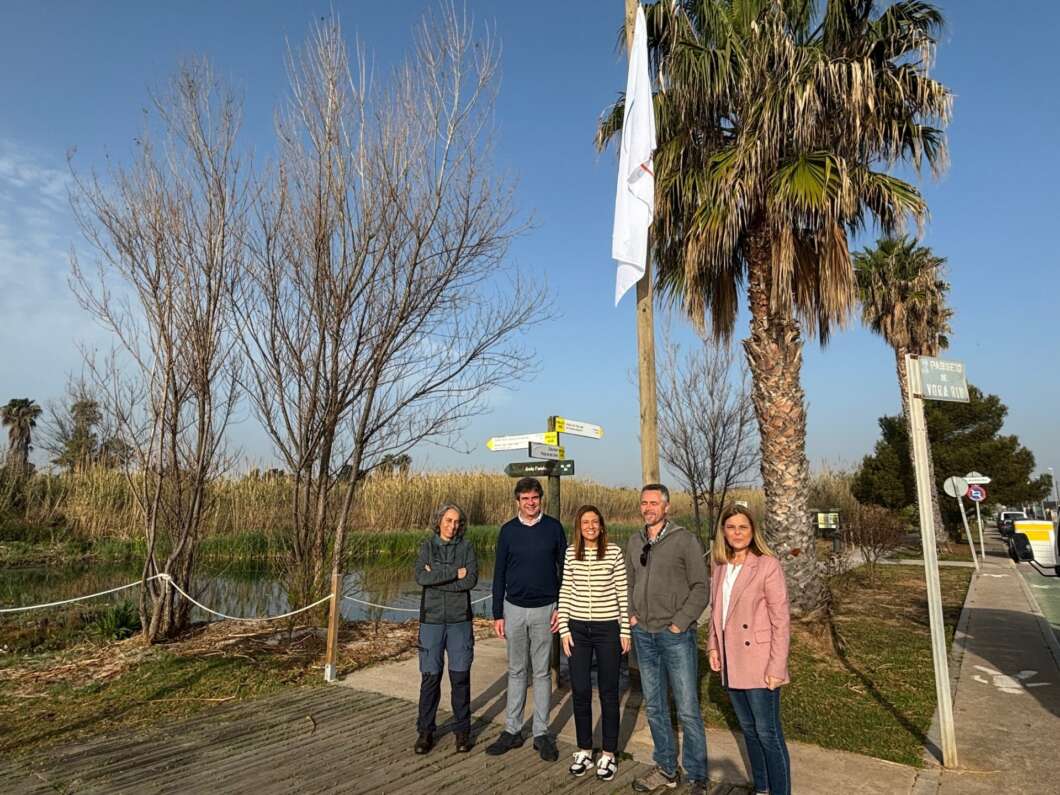 La alcaldesa de Almassora, María Tormo, junto a la concejala de Playas, Silvana Rovira, y al edil de Medio Ambiente, Juan Luis Marín, así como a técnicos del departamento de Sostenibilidad ha izado la bandera del sendero azul de la desembocadura del Millars. La Asociación de Educación Ambiental y del Consumidor (ADEAC) entregó la semana pasada este distintivo a la alcaldesa en un acto celebrado en Madrid.