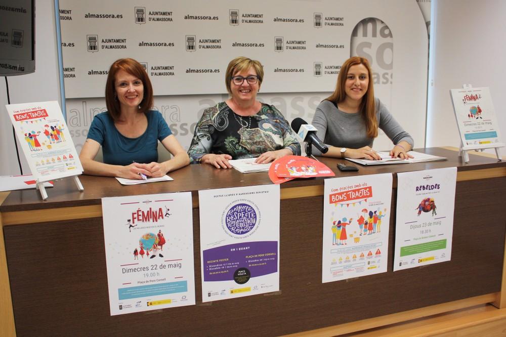 "Viurem uns dies molt especials i intensos per a la ciutadania d'Almassora i volem crear un context idoni per a la convivència i la diversió, en el qual la festa mai siga l'excusa per a exercir cap abús", ha assegurat Nicolau, qui ha donat a conéixer els detalls de la campanya al costat de l'agent municipal d'Igualtat, Ana García, i de la de coordinadora técnica provincial de Creu Roja Joventut, Rocío Ávila. Entre les novetats, destaca la distribució de 3.000 ventalls amb el lema 'Ventem el masclisme' en els quals s'inclouen recomanacions per a evitar agressions i s'informa dels recursos disponibles en el cas de presenciar-les o patir-les.
