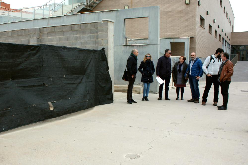 Les primeres actuacions, concretades durant la visita d'aquest matí, seran el muntatge d'una tanca metàl·lica que delimite la zona de treball i separe les obres de la resta d'espais esportius. A fi de protegir també el centre educatiu confrontant, els responsables del projecte van erigir en la primera fase una paret, a la qual afegiran estructures de protecció durant el desenvolupament de les obres.