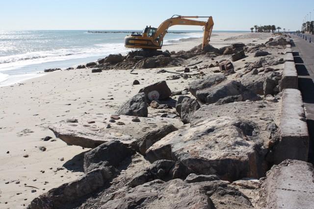 Esta misma mañana han dado comienzo los trabajos de la limpieza de la playa del Pla de la Torre de Almassora, consistentes en la retirada y reubicación de rocas y fragmentos de hormigón depositados sobre la arena y que dificultan el paso de los bañistas. La actuación, que afectará a un tramo aproximado de 250 metros situado entre los números 234 y 260 del Paseo Marítimo, contempla sanear la zona, despejar y proteger la salidas de las acequias de riego y reforzar la escollera longitudinal a la playa.