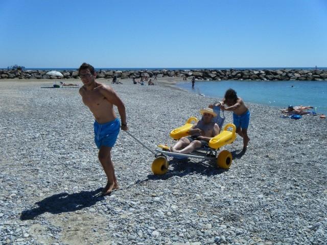 Sobre las 11.00 horas, los mayores toman el transporte adaptado cargados de refrescos o agua para dar un paseo por la orilla, respirar la brisa marina, tomar un saludable baño de sol con la correspondiente protección o, simplemente, disfrutar de la visión del mar. Una actividad que, acompañada por canciones, recibió el pasado miércoles el apoyo de los profesionales del servicio de socorrismo y salvamento que desde el pasado mes de junio trabajan en la playa de Almassora.