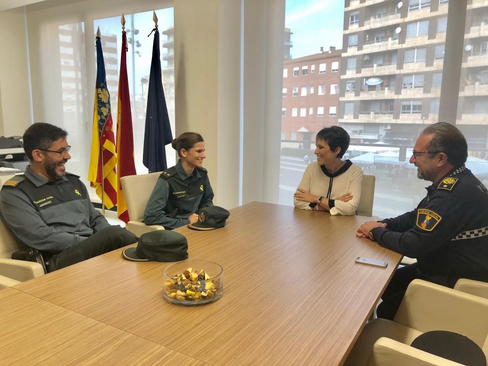 L'alcaldessa d'Almassora, Merche Galí, ha donat la benvinguda aquest matí a la primera comandant de lloc de la Guàrdia Civil en la localitat, María del Camino Martínez de Baños, al costat del seu antecessor en el càrrec, Enrique Coronado. Galí ha aprofitat la trobada per a abordar les qüestions de seguretat que afecten a Almassora i felicitar a Martínez de Baños “per ser la primera dona en aquest càrrec, prova que anem trencant les bretxes de gènere en tots els àmbits”. El comissari de la Policia Local, Roberto Verdoy, ha acompanyat als agents de la Benemèrita en la recepció en l'Alcaldia. L'alcaldessa ha reiterat la seua confiança en la inclusió de les obres de la caserna en els pròxims Pressupostos Generals de l'Estat.