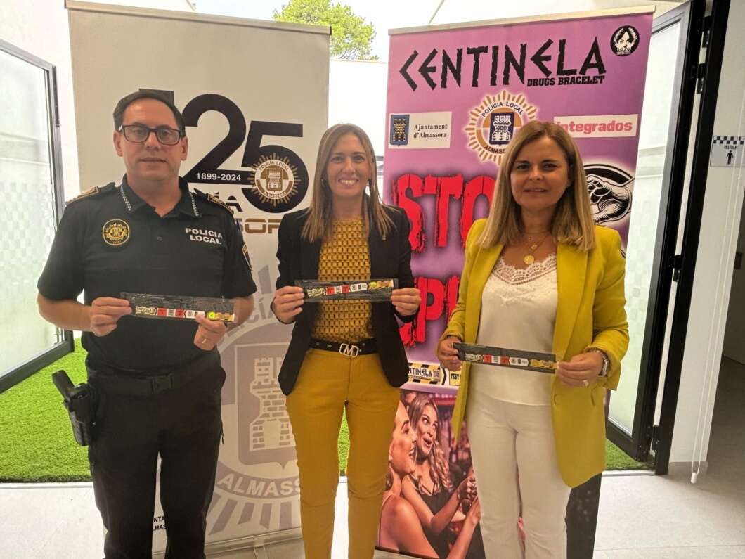 L'Ajuntament d'Almassora repartirà unes noves polseres que detecten drogues en les begudes per a evitar agressions sexuals per submissió química durant les festes patronals de la Mare de Déu del Roser. L'alcaldessa, María Tormo; la regidora de Seguretat Ciutadana, Silvana Rovira, i l'intendent de la Policia Local, José Alós, han presentat en la comissaria de la Policia Local esta ferramenta innovadora anomenada Polsera Sentinella Premium, que es distribuirà en els punts violeta, situats en el recinte de festes, així com en diversos espais de la Unitat de Prevenció Comunitària en Conductes Addictives (UPCCA).
