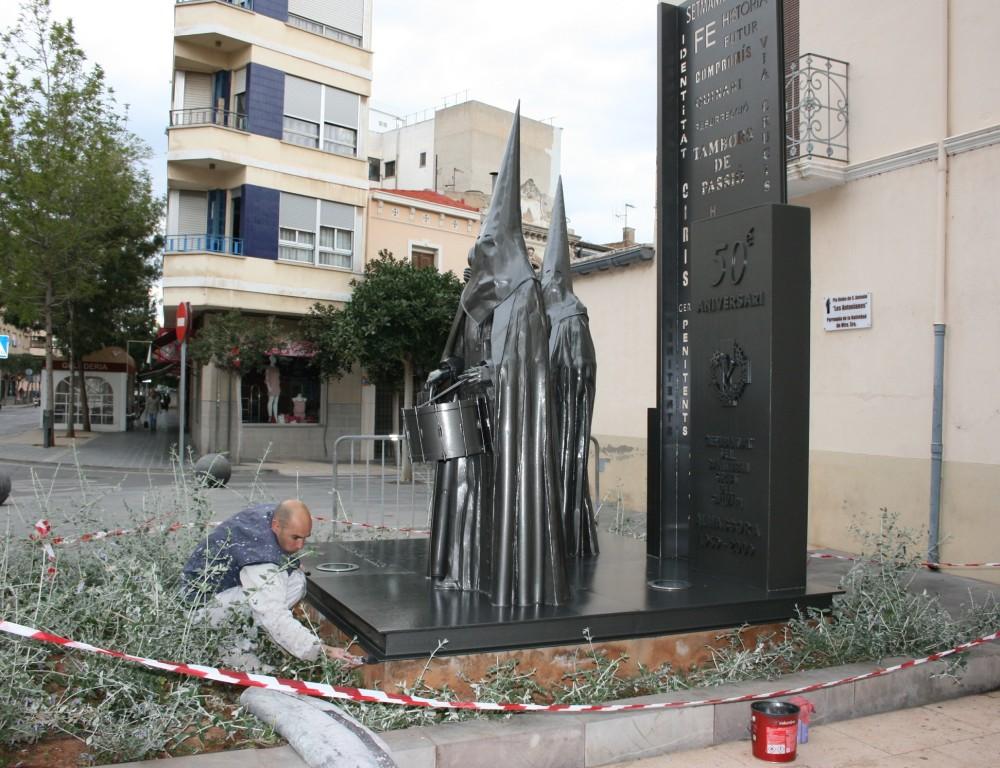 El departament de Serveis Públics ha encarregat a una empresa d'Almassora la restauració del monument 'Els penitents', obra de l'autor local Vicente Agustí Ballester en honor a la Setmana Santa. El regidor de l'àrea, Joan Antoni Trenco, ha recordat que l'obra, íntegrament de ferro, data de 2009 i es troba deteriorada, per la qual cosa la reparació a càrrec d'una signatura local permetrà que siga a punt durant les celebracions de Pasqua.