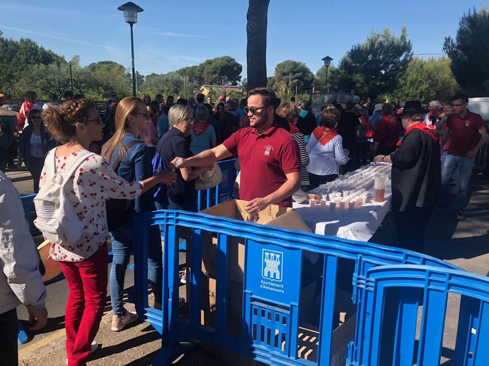 Abillats amb el característic mocador roig, els romers han arribat al paratge hora i mitja més tard, on han arreplegat els 9.000 rollets d’anís i copes de mistela per a reposar forces al costat del Millars. Per la seua banda, la Junta de Dames de Santa Quitèria i Verge del Rosario ha venut en els punts habituals les cintes commemoratives i els mocadors, la recaptació dels quals destinaran a Mans Unides i Creu Roja Almassora.