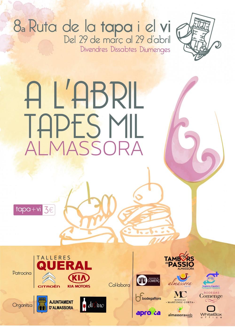 La vuitena edició de la Ruta de la Tapa i el Vi arriba a Almassora amb les propostes de 18 bars i restaurants del municipi. Veïns i visitants podran gaudir d'un ampli ventall de propostes dels negocis locals, en els quals la combinació de tapa i beguda tindrà un preu de tres euros.